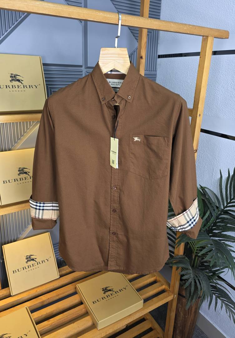 Plain?Cotton?Casual Shirt With Regular Collar With Full Sleeve Style